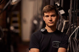 So, perhaps inspired a little by Irving Penn and his corner portraits, I started making portraits of people in my own tight little workspace. Here you’ll see not only onstage talent, but also the talented folks who make shows happen all over the world…faces you would otherwise never see. And you’ll get to see me, doing two of my favorite things…making photos and being up on the jump.